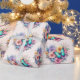 Wrapping paper with a beautiful illustration. A heart-shaped bouquet of flowers in pastel blue, green, purple and yellow. With a lovely blue butterfly hovering in front.