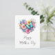 Mother's Day postcard with a beautiful illustration. A heart-shaped bouquet of flowers in pastel blue, green, purple and yellow. With a lovely blue butterfly hovering in front.