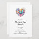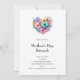 A Mother's Day brunch invitation with a beautiful illustration. A heart-shaped bouquet of flowers in pastel blue, green, purple and yellow. With a lovely blue butterfly hovering in front.