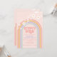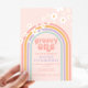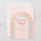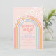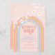 Retro inspired groovy one first birthday invitation with hippie style pastel rainbow, and daisies