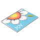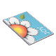 Bright and cheerful painted daisy or daisies scattered joyfully against turquoise blue stripes.