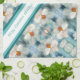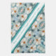 Pretty white daisies, a watercolor pattern accented with turquoise and golden yellow. The stripes in centre can be switched to any colour, and text can be personalised to any message, both are also removable.