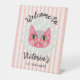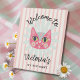 Cute Daisy kitty cat Welcome Sign. Features a hippy folk art inspired pink cat the pale blue daisy with striped background. All wording can be changed! To make more changes go to Personalise this template. On the bottom you’ll see “Want to customise this design even further? Click on the EDIT using Design tool. From there you can change some of the fonts & some colours, move things around or delete what you need.#zazzlemade