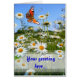 A beautiful daisy meadow image with the added beauty of a Peacock butterfly, ready for your special message. Suitable for so many occasions!