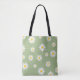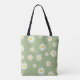Gorgeous pattern of daisy flowers floating on a sage green background. Plan, simple, joyful and cute.
