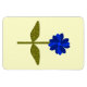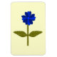 This awesome magnet features a digital image of a daisy with a green stem with two green leaves on it and light and dark blue coloured petals with a light blue centre. The background is sunshine yellow.