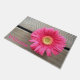 This custom doormat is designed with an image of a pink Gerbera Daisy between neutral toned, naturally coloured wooden boards. "Welcome" is added in large, easy-to-read lettering. The mat measures 24" x 36", and has a smooth felt front & nonslip latex back. It also has a reinforced edge to resist fraying, is both fade & mildew resistant, and cleans easily with a spray of water. Ideal for covered entryways such as porches, apartments, offices, condos, etc. Feel free to contact me through Zazzle if you have questions about this mat or would like help transferring this design to a different item. I'm happy to help to ensure the image and lettering fit correctly.