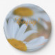 Designer daisy paper plates, for summer celebration. Personalise the text to suit your special celebration.