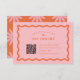 These wedding rsvp cards feature a bold orange colour paired with a light pink, creating a vibrant and playful aesthetic. The retro wave border adds a touch of nostalgia and adds a fun and unique element to the design. The cards come in multiple colour options, giving you the flexibility to create a cohesive look for your special day. The additional stationery in this collection is designed to mix and match, allowing you to create a custom and coordinated look for your wedding.