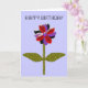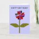 This beautiful floral greeting card features a digital image of a daisy with a green stem with two green leaves on it and purple, red and black coloured petals with a purple centre. The petals look like they are made of shining plastic that has caught the light and caused an iridescent effect. The background is a calming blue colour. The text on the front says happy birthday but is customisable so you can adapt it for other special occasions too. The inside of the card has been left blank so you can add your own special greeting. To do this simply click on the “customise it” button. Here you will be able to add your text using a range of fonts and colours. You can also change the background colour of the card.