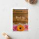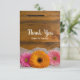 Send a warm message of gratefulness and gratitude after an engagement party, bridal shower or wedding with the country chic Daisy Trio Country Barn Wedding Flat Thank You Note. These informal yet elegant custom farm or ranch style theme thank you notes feature a quaint floral photograph of two pink gerber daisies and one orange daisy flower blossom with a white bridal veil and a weathered brown barn wood background.