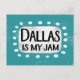 "Dallas Is My Jam" is a fun text design with a white accent shape surrounded by white whimsical textured dots.