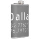 Dallas Texas latitude and longitude map coordinates in modern urban font on grey background