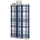 Dallas Sports Fan Navy Blue Silver Plaid Striped Hip Flask