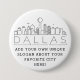 A customisable button representing the beautiful city of Dallas, Texas. This button features a stylised deco illustration of the city's unique skyline along with its name underneath. Underneath the city name is a spot for your unique slogan or statement about your favourite city.