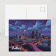 Capture the distinctive style of the "Big D" with this vibrant, artistic postcard featuring the Dallas, Texas skyline. This unique painted effect highlights the futuristic downtown architecture, including the famous glowing sphere of the Reunion Tower and the neon lights of the highways, all set under a dramatic, colorful sky. Perfect for Texas locals, business visitors, or art lovers who appreciate this iconic Southwest metropolis. Use this postcard for travel greetings, as a piece of unique artwork, or for corporate mail.