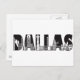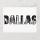 Dallas Bllack and White Text Letters with Buildings and Landmarks Outline Silhouette Illustration Drawing