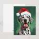 Colourful and joyful Christmas design with a Dalmatian wearing a Santa hat.