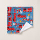 Dalmatian Dog Firetruck Firefighters Bath Towels. Adorable animal rescuer pattern for kids. Grey, black, white, red dalmatian dogs and firetruck design. www.SamAnnDesigns.com