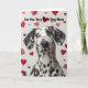 This cute card for the Dalmatian dog Mom or Dad makes a great Valentine's Day card, but can also be used for a birthday or any other special occasion. All the text is easily changed to anything that you'd like. The front has an image of an adorable Dalmatian dog surrounded by red hearts. The inside currently says "You make my tail WAG".