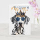 A fun birthday card for the dog lover and Dalmatian lover, this cute firehouse dog is regal in a navy and gold coloured crown and cool sunglasses.