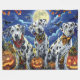 Unleash the spooky spirit with this eerie Halloween design featuring a pack of dogs under a dark, moonlit sky, surrounded by flying bats and glowing pumpkins. Perfect for those who love a touch of frightful fun with their furry friends!