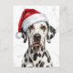 Dalmatian in Santa Hat Watercolor Xmas Holiday Postcard