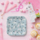 Cute Dalmatian dogs sit and stand black and white spotted coats with scattered dog bones and pawprints pattern.