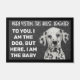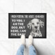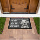 Custom dog doormat with a funny quote. "To you, I am the dog, but here, I am the baby." It has a non-slip rubber that won't crack or buckle, resists fading, mould, and mildew and can be easily cleaned with a hose. Be creative - click on CUSTOMIZE to add/remove/change text, change the picture, resize the picture, change colours, background or anything else the customisation tool will allow!