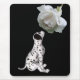 Cute dalmatian puppy smelling a lovely white rose with lingering raindrops animal mousepad - design by Susan. Click on Customise to add text and change background colour. This image is available on many products in my gallery. Please visit Smilin' Eyes Treasures to see more flower and nature photography and digital art cards and gifts.