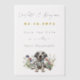 Vellum paper save the date template with Dalmation dog design. Wildflowers and black puppy image at the bottom of transparent paper. Customise for your event using five lines text in script and printed fonts in black and gold. Easily change the text colour in the design tool, or ask me for help.