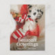 Dalmation puppy with Christmas stocking and holly Holiday Postcard
