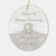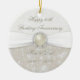 A Digitalbcon Images Design featuring a satin pearl colour theme with a variety of custom images, shapes, patterns, styles and fonts in this one-of-a-kind "Damask Pearl Wedding Anniversary" Ornament. This elegant and attractive design makes the perfect Anniversary gift for the Anniversary couple or as a complete dinner set and comes complete with customisable text letter to suit your own special occasion.