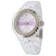 A Digitalbcon Images Design featuring an amethyst purple colour and damask design theme in this one-of-a-kind "Damask Amethyst Wedding Anniversary" Watch. This attractive and elegant design comes complete with contrasting colour clock face numbers and customisable text lettering to suit your own special occasion, making this the ideal anniversary gift for parents or spouse.