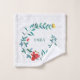 Beautiful watercolor red and yellow flowers and green leaves over white floral damask pattern. Optional monogram