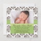 Damask Baby Birth Photo Annoucement Green Brown Announcement