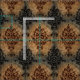 Linda Baysinger Peck's elegant, rich looking, Victorian style urns in rust and black on grey and tan damask design.
