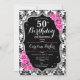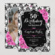 Damask Black Silver Pink Photo 50th Birthday Invitation