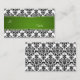 Damask black and white pattern with wide green strip Wedding Place card/Table card/Gift Business card.