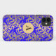 Elegant, colourful and beautiful custom blue and gold monogram damask pattern iPhone 4/4S Case-Mate cases and gifts for Valentine's Day, birthdays, Christmas or any occasion. Just add your initials!