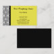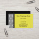 This modern business card has a vintage damask border in black and white decorating this elegant lemon yellow background design giving your business card a touch of class. A great business card for your company - or even for your own personal use. Matching letterhead and postage are available.