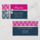 Damask Faux Silver Ribbon Navy Blue Fuchsia Enclosure Card