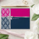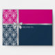 Damask Faux Silver Ribbon Navy Blue Fuchsia Envelope