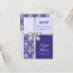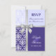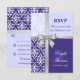 Damask Faux Silver Ribbon Purple Wedding RSVP Card