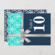 © 2013 Socialite Designs. Our elegant white damask table number card has a faux silver ribbon and bow design and is a perfect addition to your wedding or special event. The background has colours of navy blue and aqua turquoise. Just replace the number on the card for each table. Do you like this design but would like to have it in a different colour, please do not hesitate to contact Socialite Designs. PLEASE NOTE THAT THE RIBBON IS AN IMAGE AND PRINTED ONTO THE CARD.