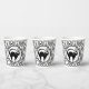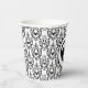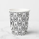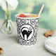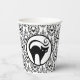 This party cup design features a black cat with a curled up tail on a black and white bat damask background.