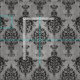 Linda Baysinger Peck's hand drawn, gothic black damask design, on grey faux stone texture.