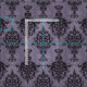 Linda Baysinger Peck's hand drawn, gothic black damask design, on purple faux stone texture.