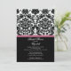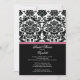 Start off your event off right with our trendy & elegant damask Bridal shower invitation set on a black background with a Honeysuckle Pink band. Just customise our invitation with your wedding information and you're all set to go. Available in other colour combinations in our shop at www.celebrateitweddings.com. Check out our matching thank you notes, stickers and bridal buttons in our shop