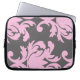Damask laptop sleeves with floral design in pink and grey that protects your laptop, netbook, or tablet in style.